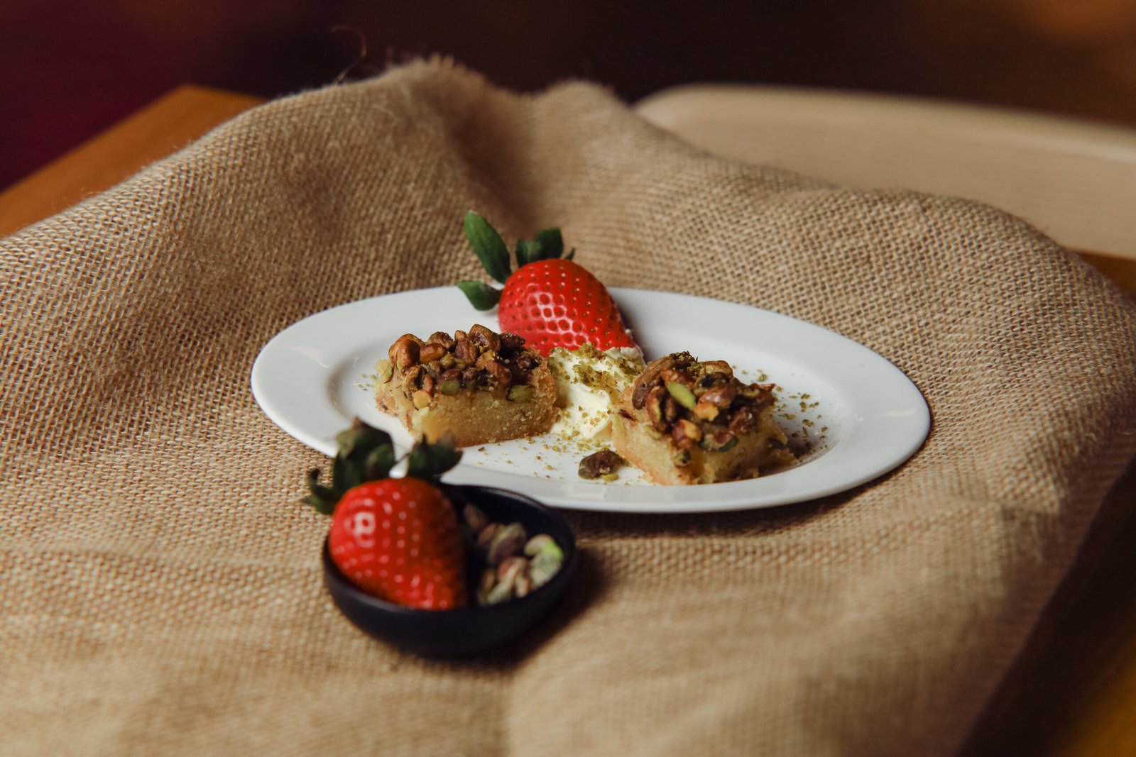 Indulge in the rich and irresistible flavors of our Harissa Semolina Cake, crafted with honey and adorned with delicate pistachio pieces. This traditional dessert combines the soft, moist texture of semolina with the natural sweetness of honey and a hint of nutty crunch from pistachios, making it a truly unforgettable experience for your taste buds.